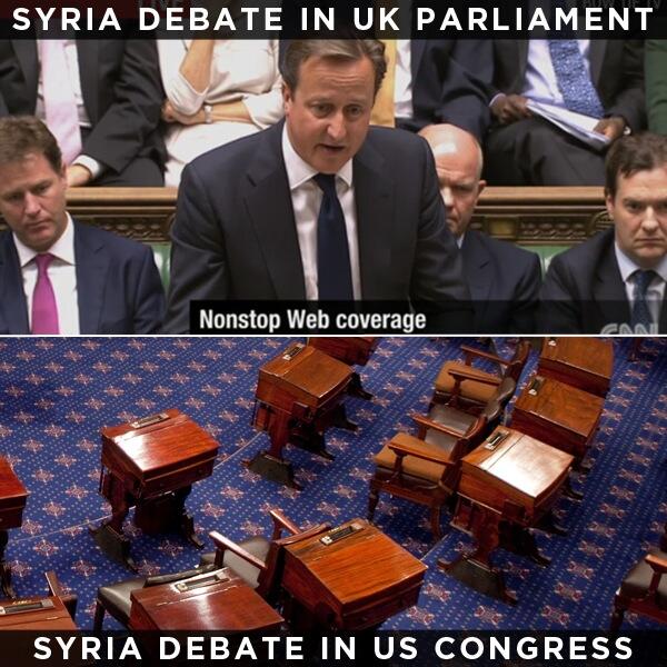 I will say that Obama swerved me by suddenly announcing he would first seek Congressional approval. Why did he do so, after fighting going to Congress on Libya, drones, etc., and, until now, Syria? If Obama was still senator, he would be leading the charge to impeach President Obama over foreign policy. So was it a change of heart? Most of us libertarians won't look a gift horse in the mouth; for whatever reason he came to seek authority from Congress, we are happy that the one-time lecturer in Constitutional law is finally acknowledging the separation of powers. The retweeted image below was circulated before today's development.