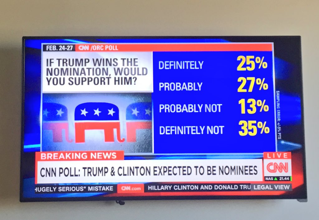 As evil as Hillary Clinton is, we can survive her. This country cannot risk Donald Trump as President. We must do what we can to stop him.— Ronald Guillemette (@raguillem) February 29, 2016