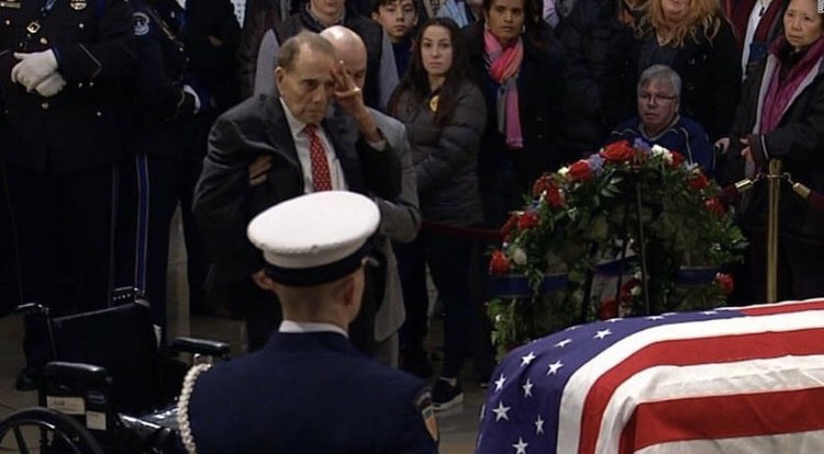 | Via Twitter: fellow WWII hero Bob Dole saluting former 1988 rival GHW Bush |